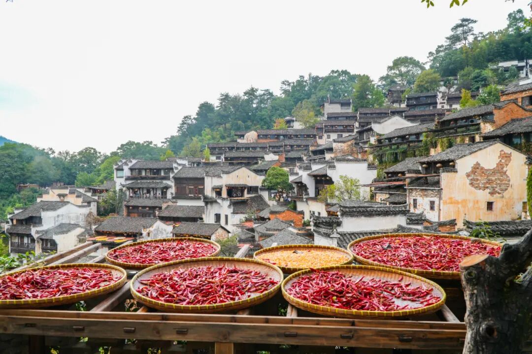 作为古村中心,这里是拍摄晒秋的便捷之地。观景台的晒,圆圆的晒匾装着丰收的果实,随手拍都能展现晒秋的热闹。