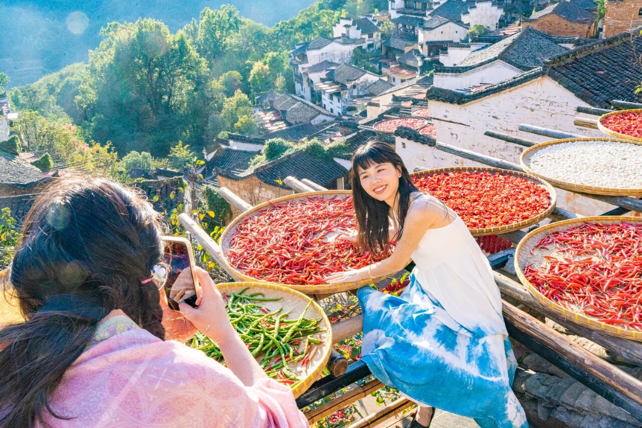 而作为 最美中国符号” 的晒秋民俗,从屋顶竹匾里的五彩农作物,延伸到全年无休的农耕文化体验,让游客从打卡到体验晒秋再到品尝晒秋宴,让静态的遗产变成了可触摸、可感知的活态文化。