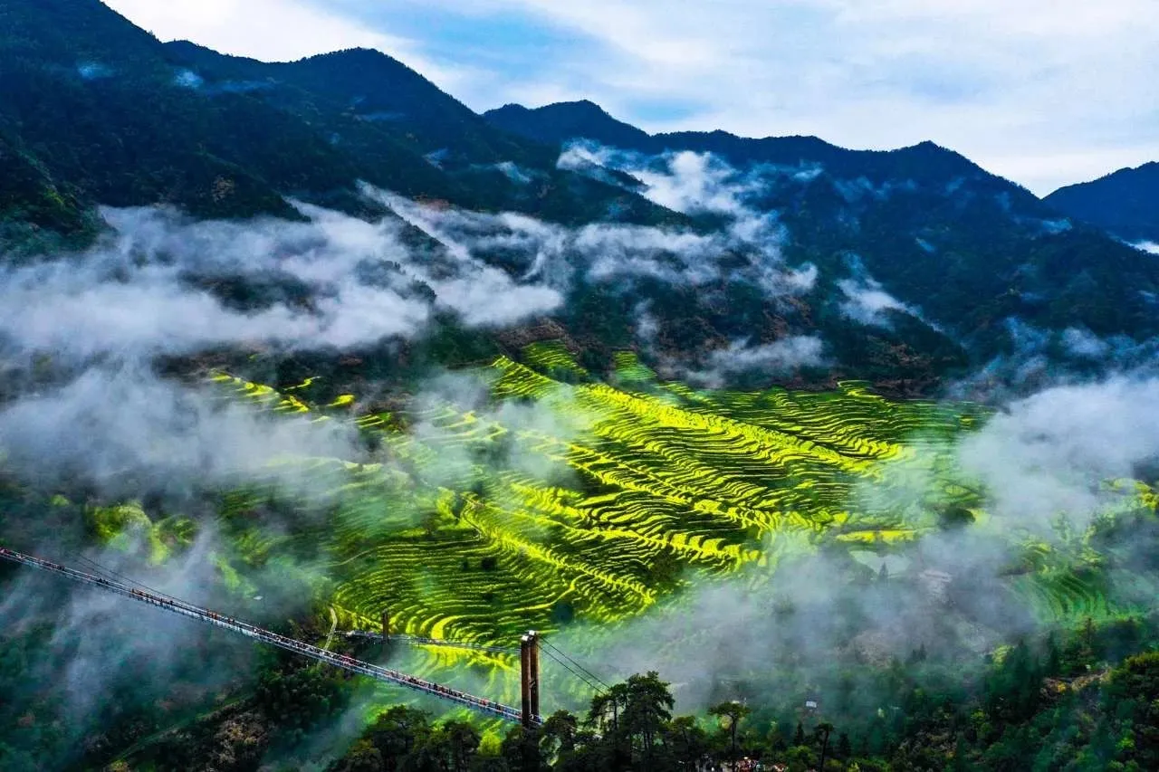 近日,婺源春雨连绵,正是观赏篁岭烟雨朦胧景色的最佳时间,粉墙黛瓦的古村+重叠有序的梯田花海,春日里这片云雾缭绕的壮观景色可千万不要错过!