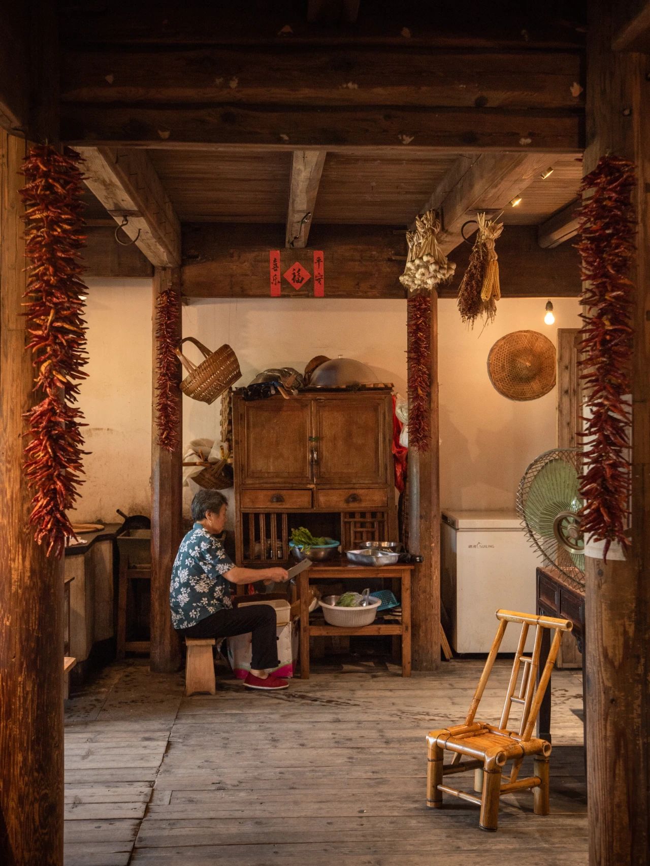乡愁记忆馆内,老旧的收音机、陈旧的农具、泛黄的老照片等老物件,承载着篁岭的岁月变迁。众屋广场的老式爆米花、手工麻糍、油煎灯等民俗小吃,一口就能勾起童年回忆。