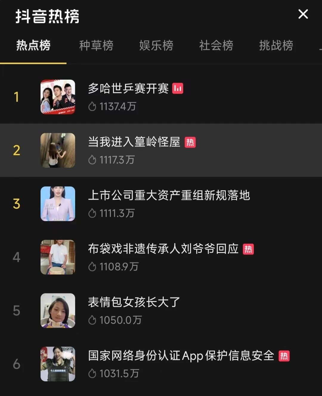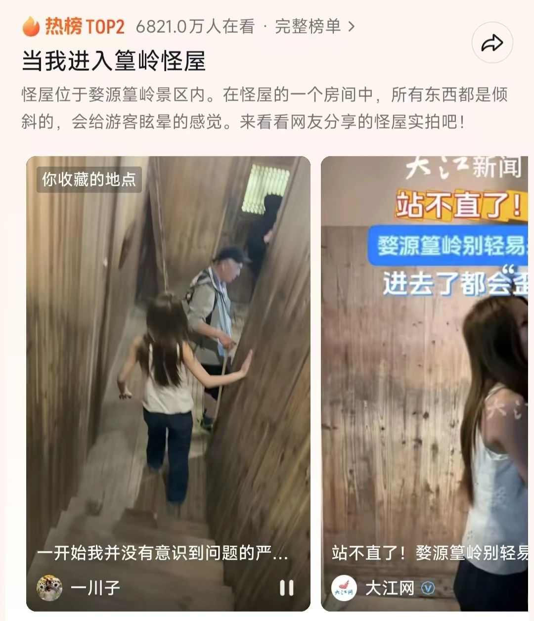 近期,位于江西婺源篁岭景区内的“怪屋”冲进了抖音全国热榜第二,相关话题 #当我进入篁岭怪屋 浏览超1100万次,同时在看人数超6800万 。