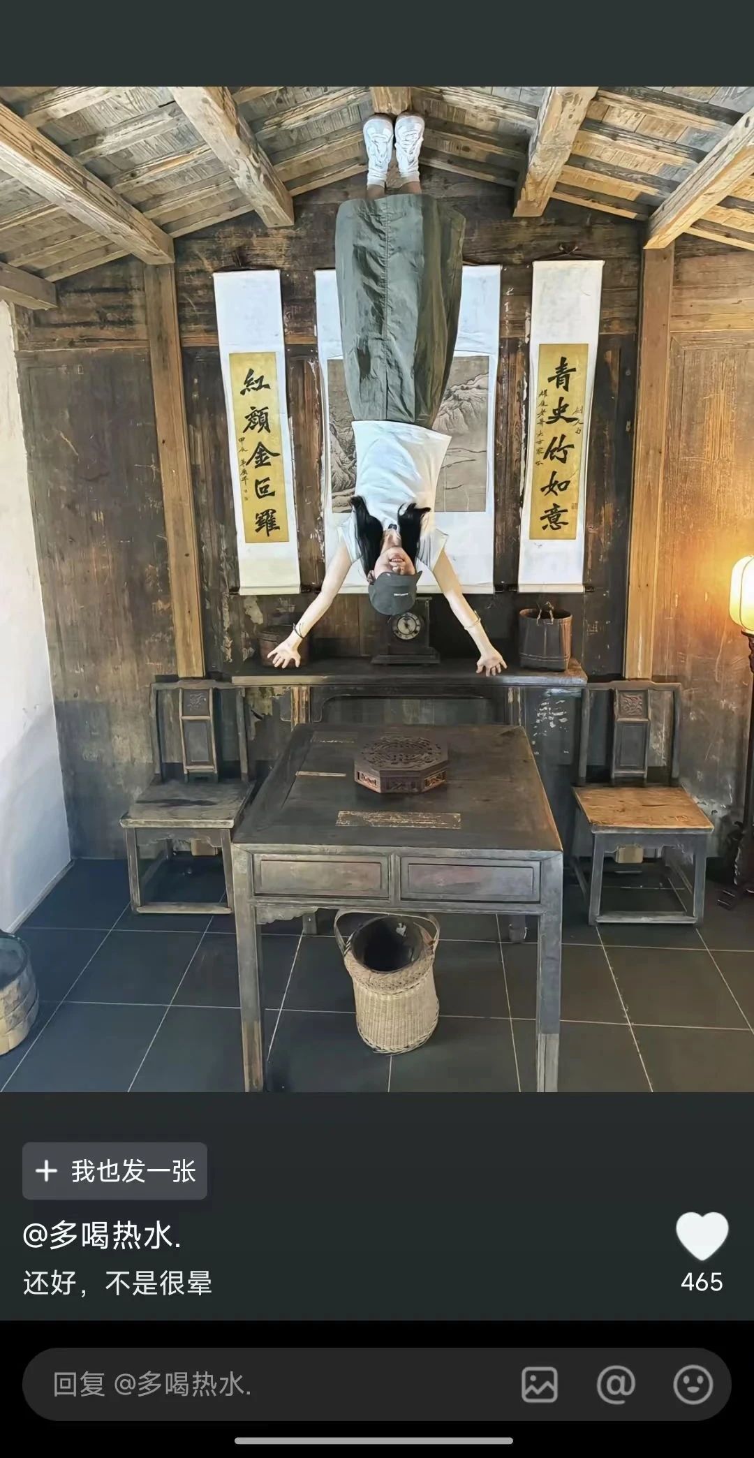 这座怪屋凭借颠倒的空间、倾斜的地板和反重力的视觉奇观强势出圈,在抖音上掀起了一阵探讨热潮,众多网友纷纷晒出篁岭怪屋打卡趣照。