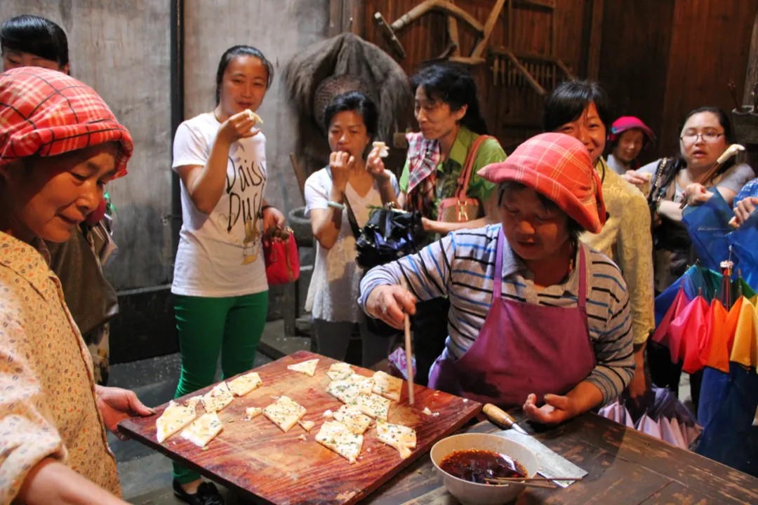 农历五月初五端午节,吃粽子赛龙舟是大部分地区的过节传统,然而在篁岭村,汽糕才是餐桌上的主角。篁岭的汽糕用料丰富,出锅之后先撒一把葱花,再刷上一层香喷喷的辣椒油,分切好后就可以大快朵颐。