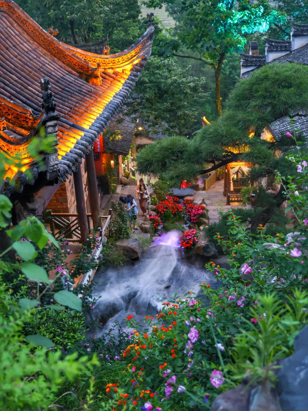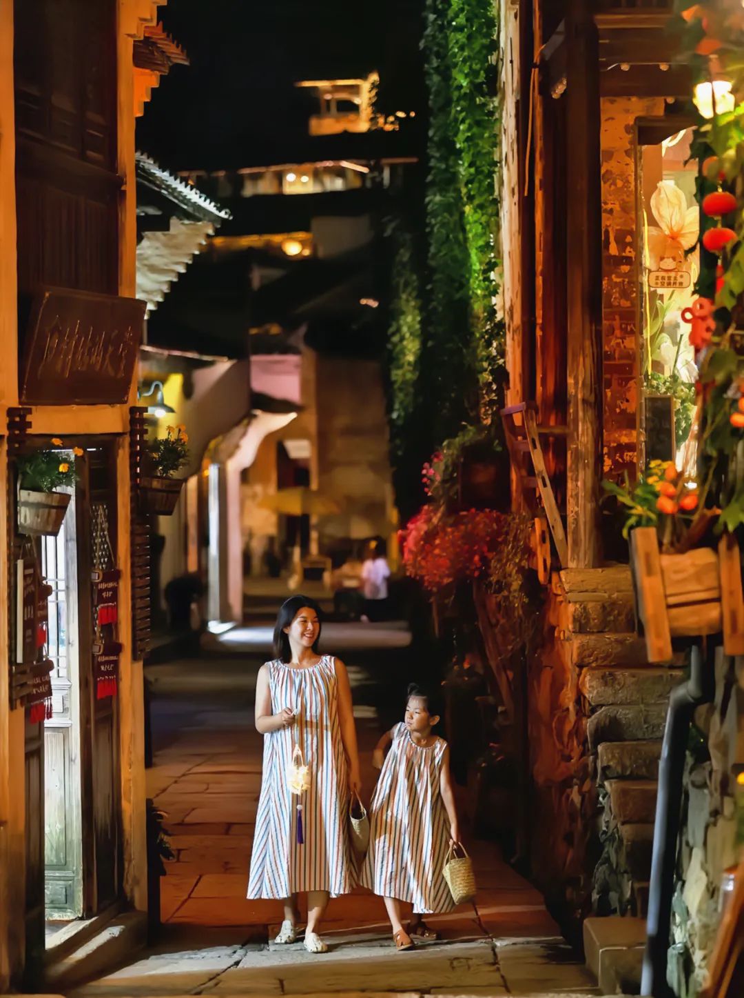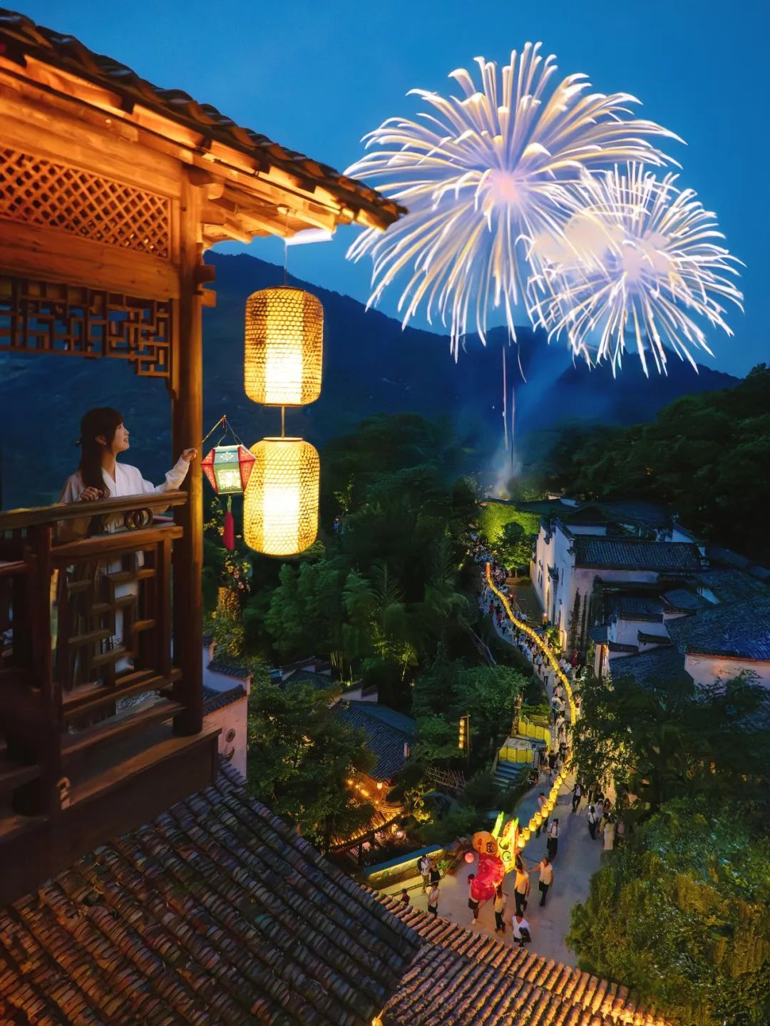 酒店接待中心四楼的观景台是一个隐蔽且小众的打卡点,这里能最大限度的避开人群,独享古村夜色,无论是吹风纳凉还是打卡拍照都十分适合。待到夏夜,板龙灯在村中穿梭飞舞,这里便成了最出片的观赏地,你可以尽情俯瞰古村,静赏舞龙盛景。
