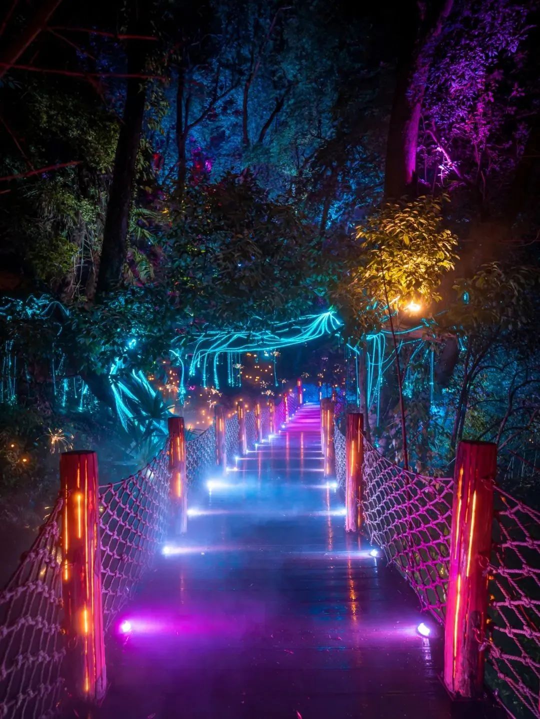 篁岭水口雨林深处,藏一条通往幻梦的光影秘径邂逅《阿凡达》发光的生命之树,藤脉如星河奔涌仰望《大鱼海棠流光飞鱼掠过头顶,鳞片抖落一袖银河魔法屋外墙正上演篁岭印象秀——晒秋椒红、梯田金浪在光影中重组成超现实诗篇。走出这片流光森林,衣角还沾着未熄的星尘,此夜幻梦,已最难忘的记忆