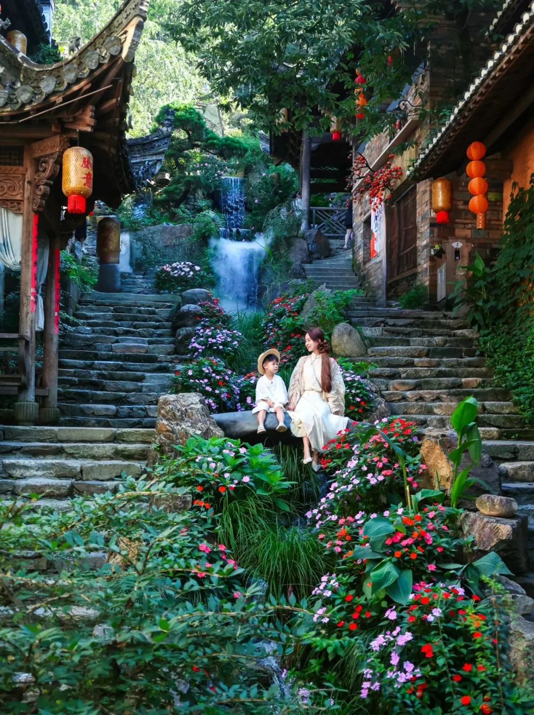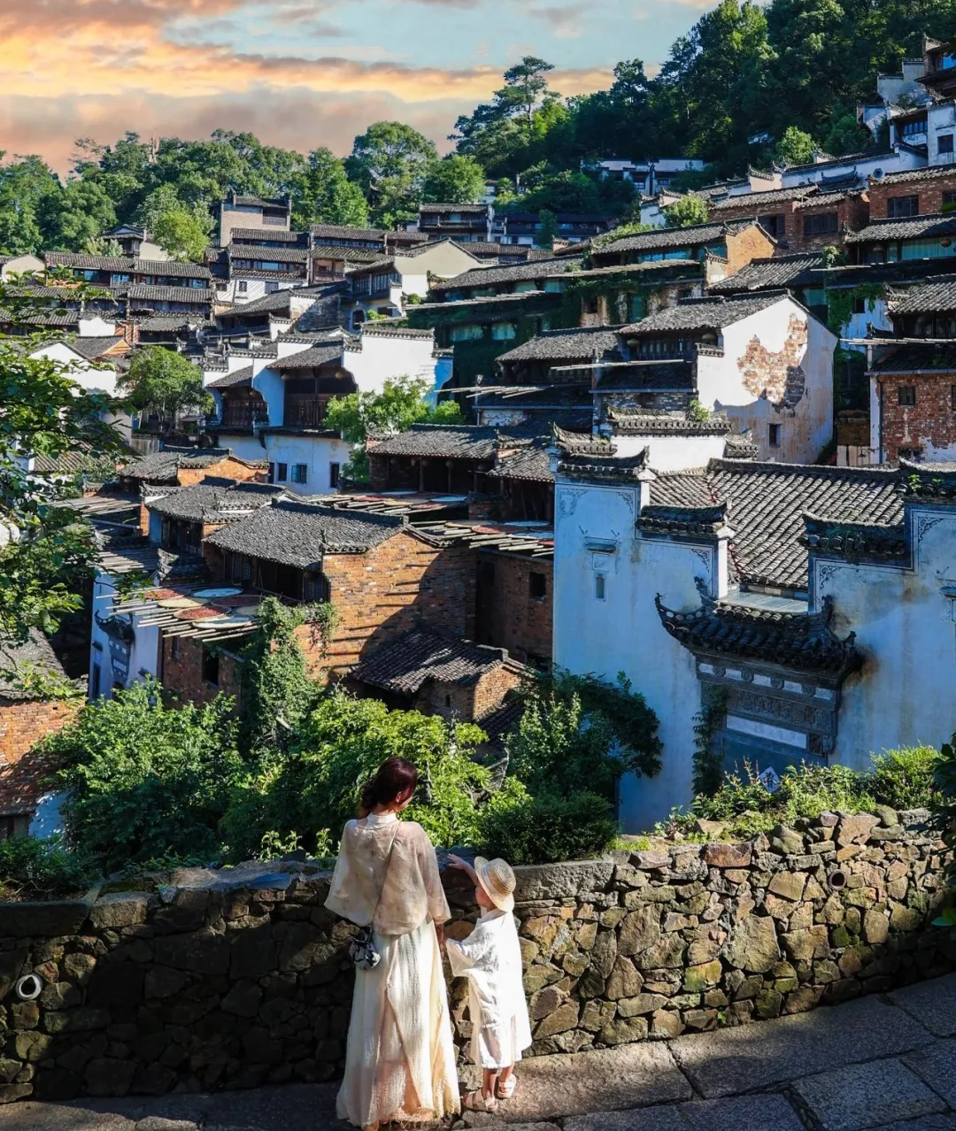 次日清晨,趁索道尚未开放、大部队未至,享受独属于住客的宁静时刻。牵着孩子漫步在几乎无人的古村巷陌,晨光熹微,绿意盎然,夏花在墙角悄然绽放,空气清新得醉人。此刻的篁岭,如同一座漂浮的世外桃源,静谧美好,是拍摄亲子大片、感受古村原生态之美的黄金时间。