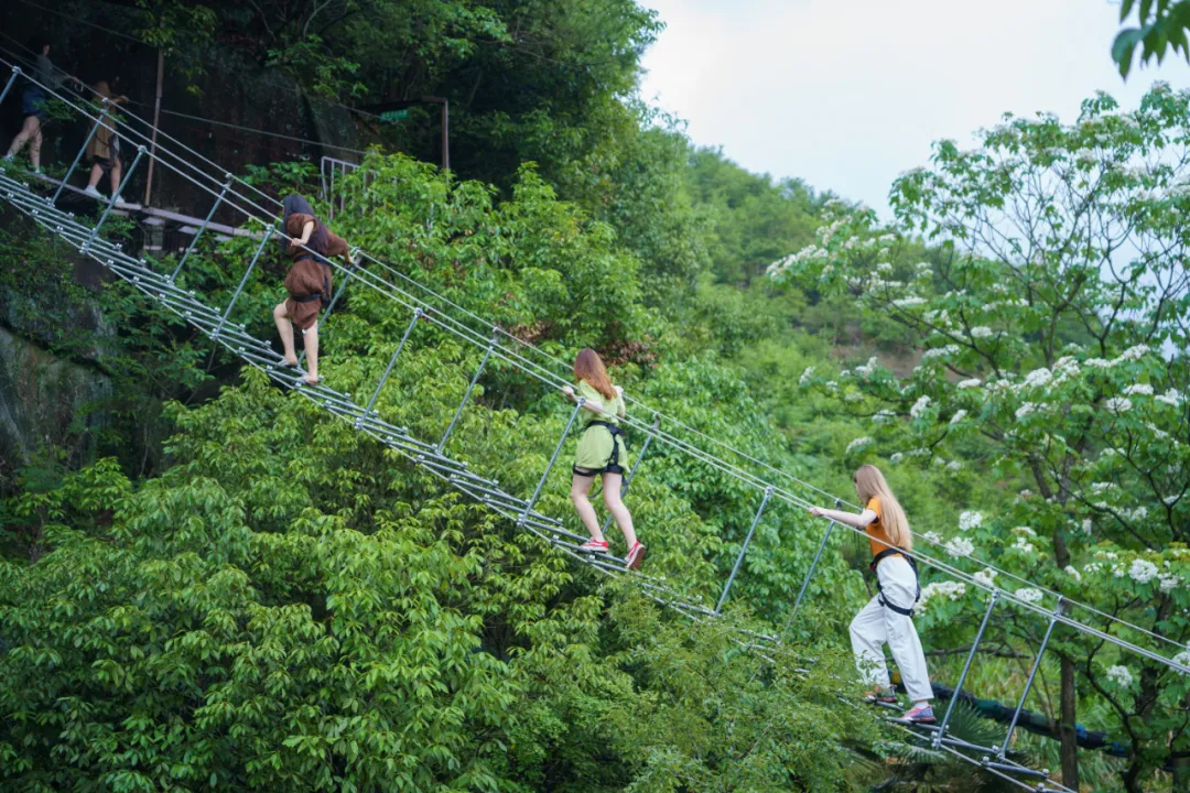 系紧安全装备,在石门峡解锁专属孩子的勇气试炼场!从凌空飞渡峡谷的刺激心跳,到征服晃晃悠悠的毅力攀登,每一次成功跨越,都是勇气勋章上闪亮的一刻,让壮丽山野见证成长的蜕变。