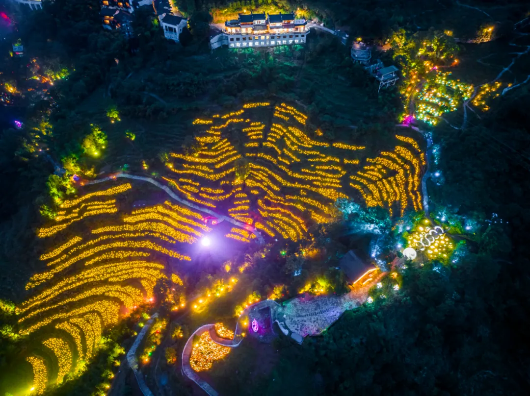 当暮色四合,篁岭便奏响了专属于夜晚的奇幻交响乐,为全家带来层层递进的视听盛宴与沉浸体验: