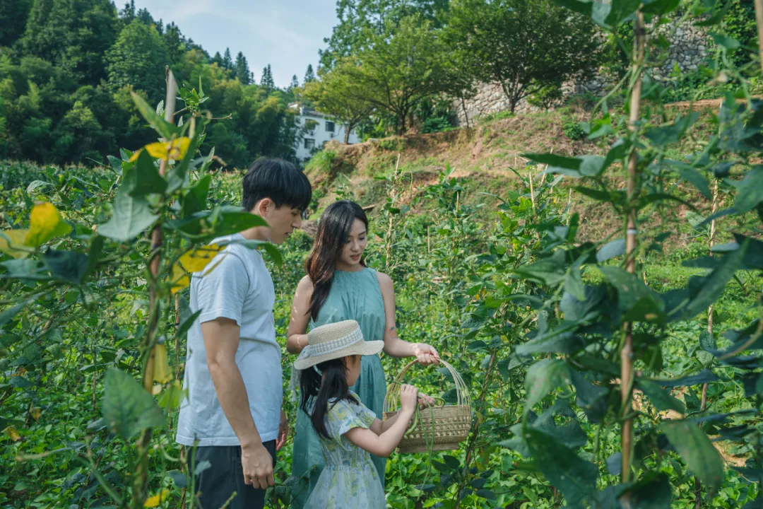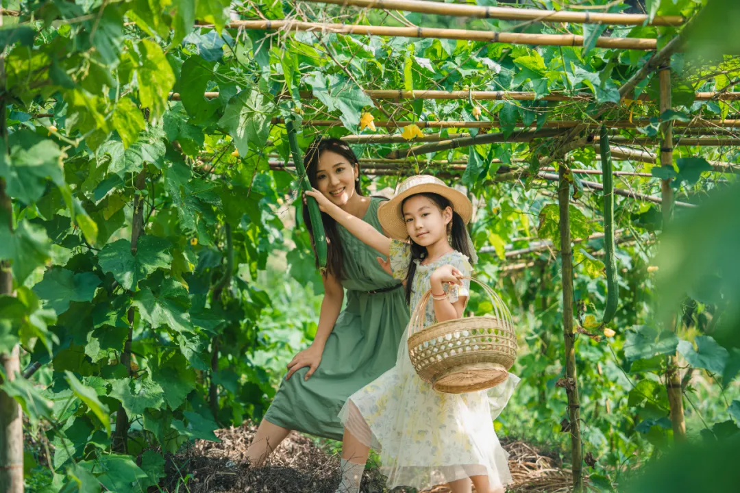带着孩子走进专属有机菜园,亲手采摘篁岭当季的新鲜蔬菜和水果:脆嫩的黄瓜、饱满的丝瓜、清甜的西瓜等触摸带着晨露的叶片,感受泥土的湿润,体验最真实的收获喜悦。