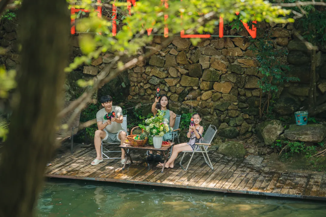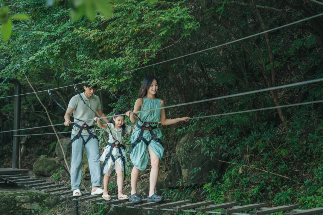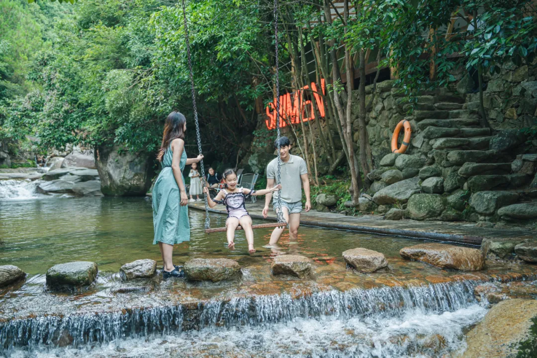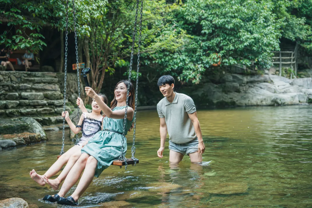 直接踏入清澈见底的溪水中,享受打水仗、踩水花的纯粹亲水乐趣,悠闲荡起溪面上的水上秋千,感受水花轻溅的惬意。