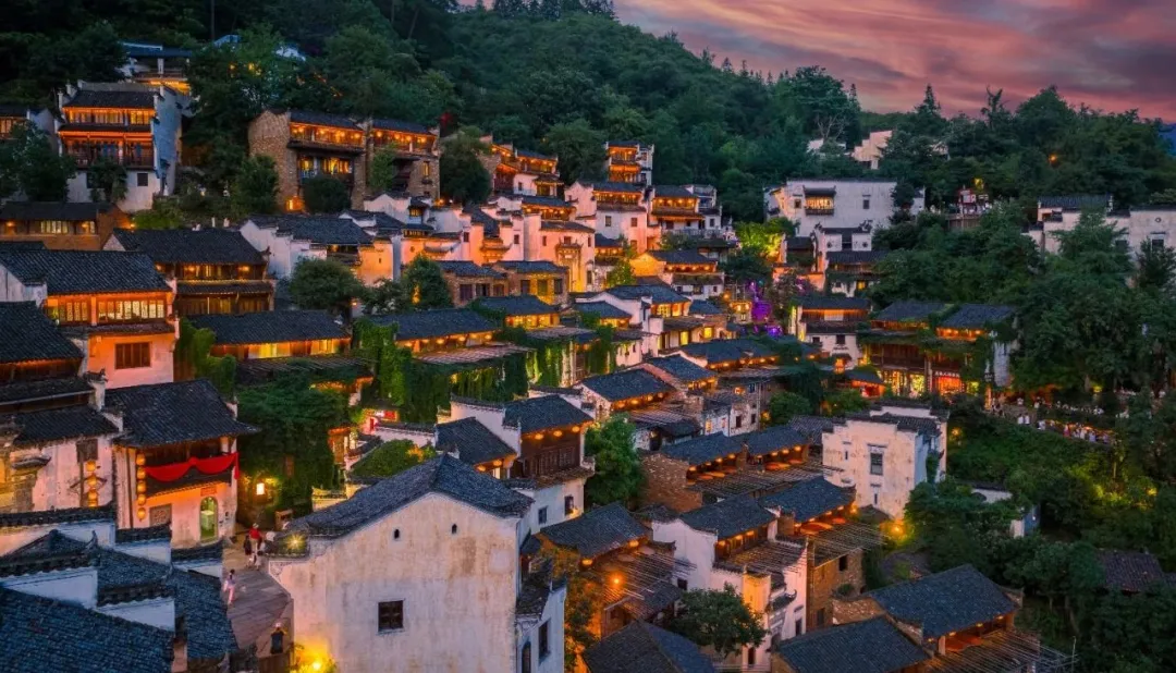 而此刻,正值盛夏。夏风裹着水汽吹过水口雨林。沿着古村青石板路漫步,能看见白墙黑瓦的徽派民居错落而生,岁月在木窗与青瓦间沉淀出一种温润的质感。夜幕降临,古村灯火与天边繁星交织成一幅深邃的画卷。