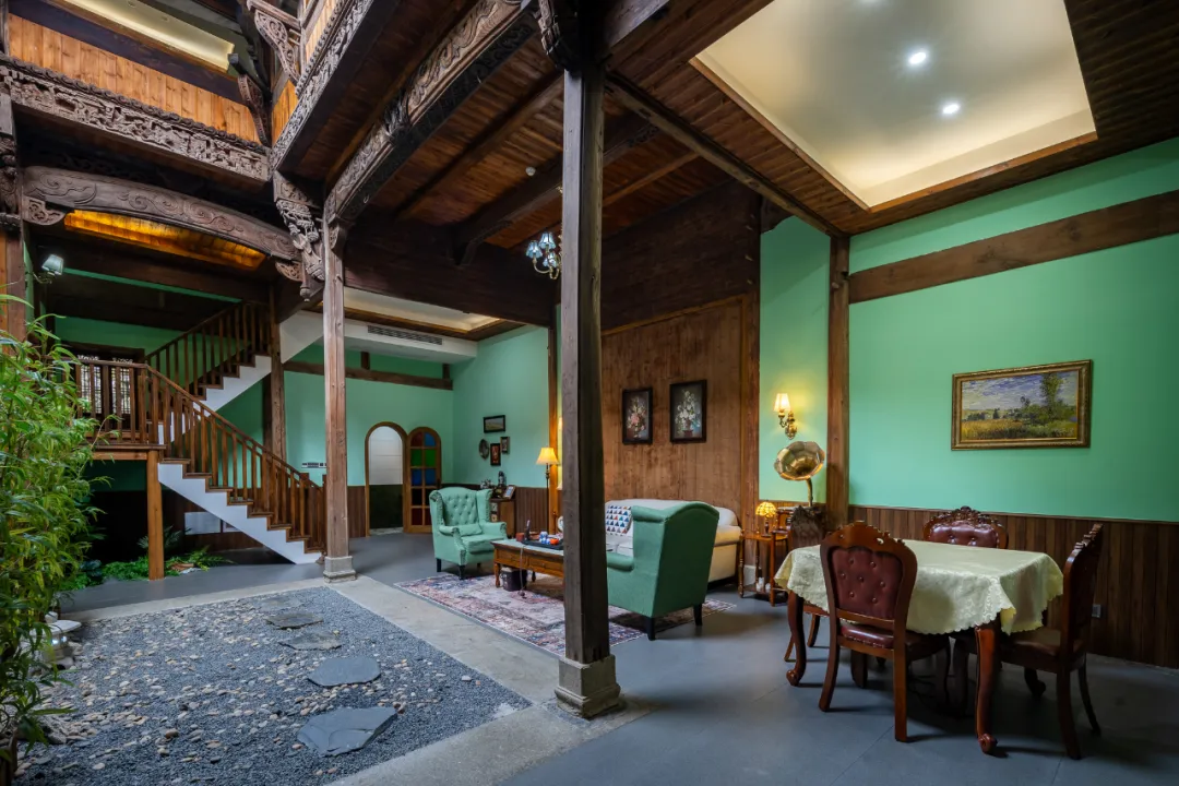 晒秋美宿散落于村落各处,由百年徽派老屋修缮而成,原始的木窗、青瓦与粉墙得以保留,肌理经岁月打磨后呈现温润质感。