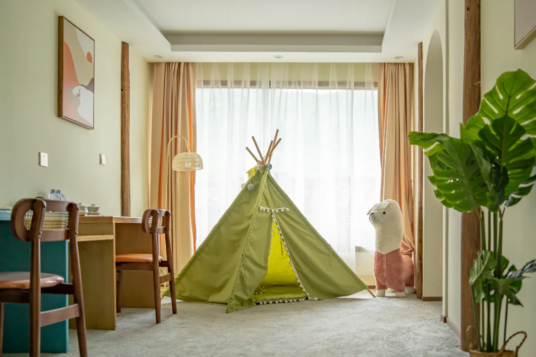 值得一提的是,如果您入住亲子房,还能获赠儿童乐园体验券。在儿童乐园里,孩子们可以尽情释放天性,玩积木、滑滑梯,还有油纸伞绘画体验,孩子们可以发挥无限的想象力,用五彩的颜料在油纸伞上描绘出属于自己的绚丽世界。
