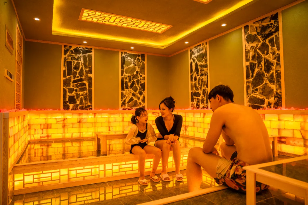 从水面走回室内,另一种静谧的放松正在等待着你。汗蒸馆以原木与石材打造出一方静暖空间。在温润的蒸汽中缓缓升温,释放身体深层的紧张与疲惫。静坐在暖黄色的光影中,让汗水带走杂质与疲惫,换来一份由内而外的轻盈感。