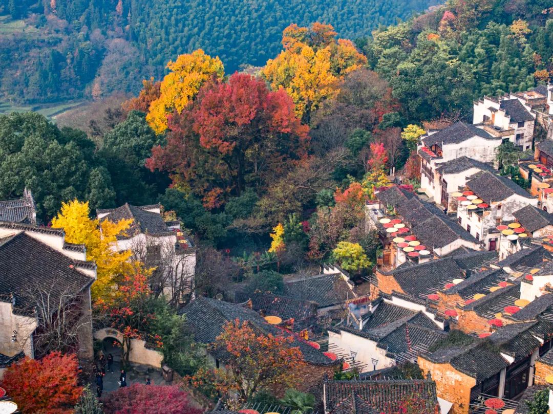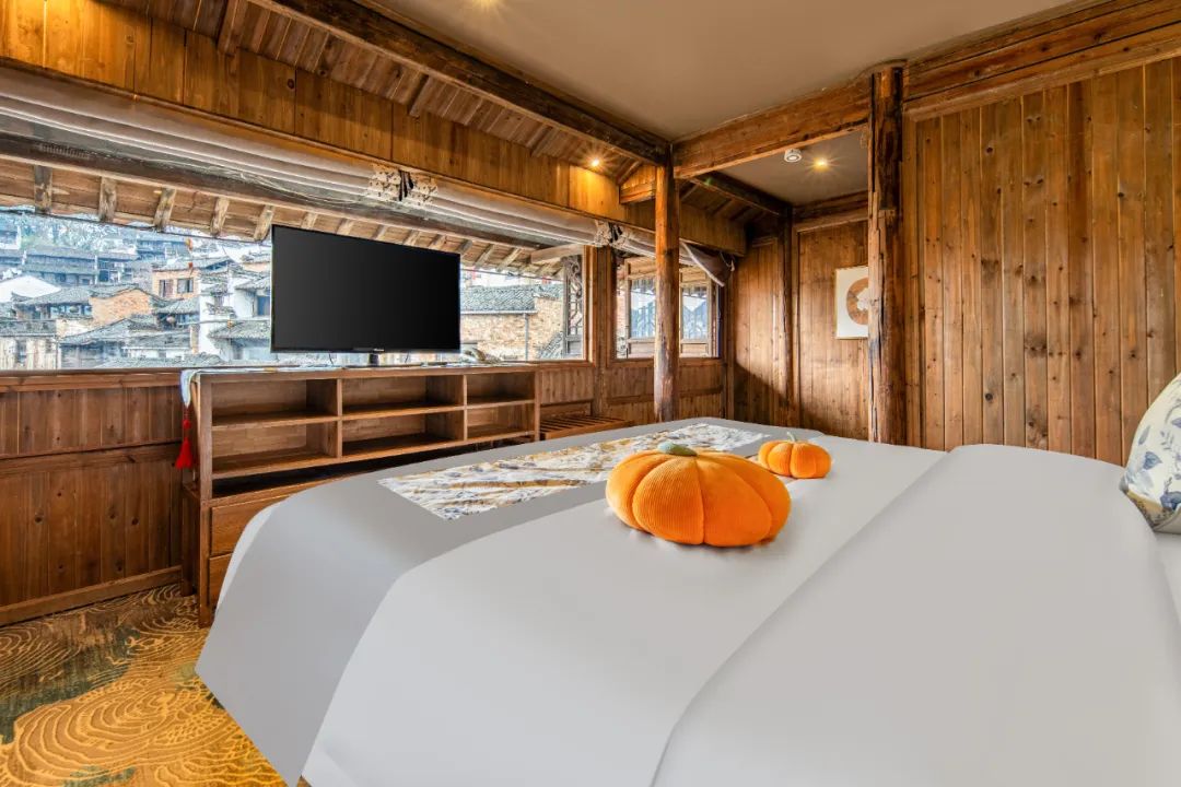 若想在晒秋季沉浸式体验篁岭,不妨入住篁岭美宿。依山居、晒秋美宿和天街酒店三种选择各具特色。其中“外看五百年徽州历史,内享五星级舒适体验”的晒秋美宿尤为适合秋季体验,它巧妙分布于古村各处,不必走出民宿,推窗便可直接体验晒秋的乐趣。