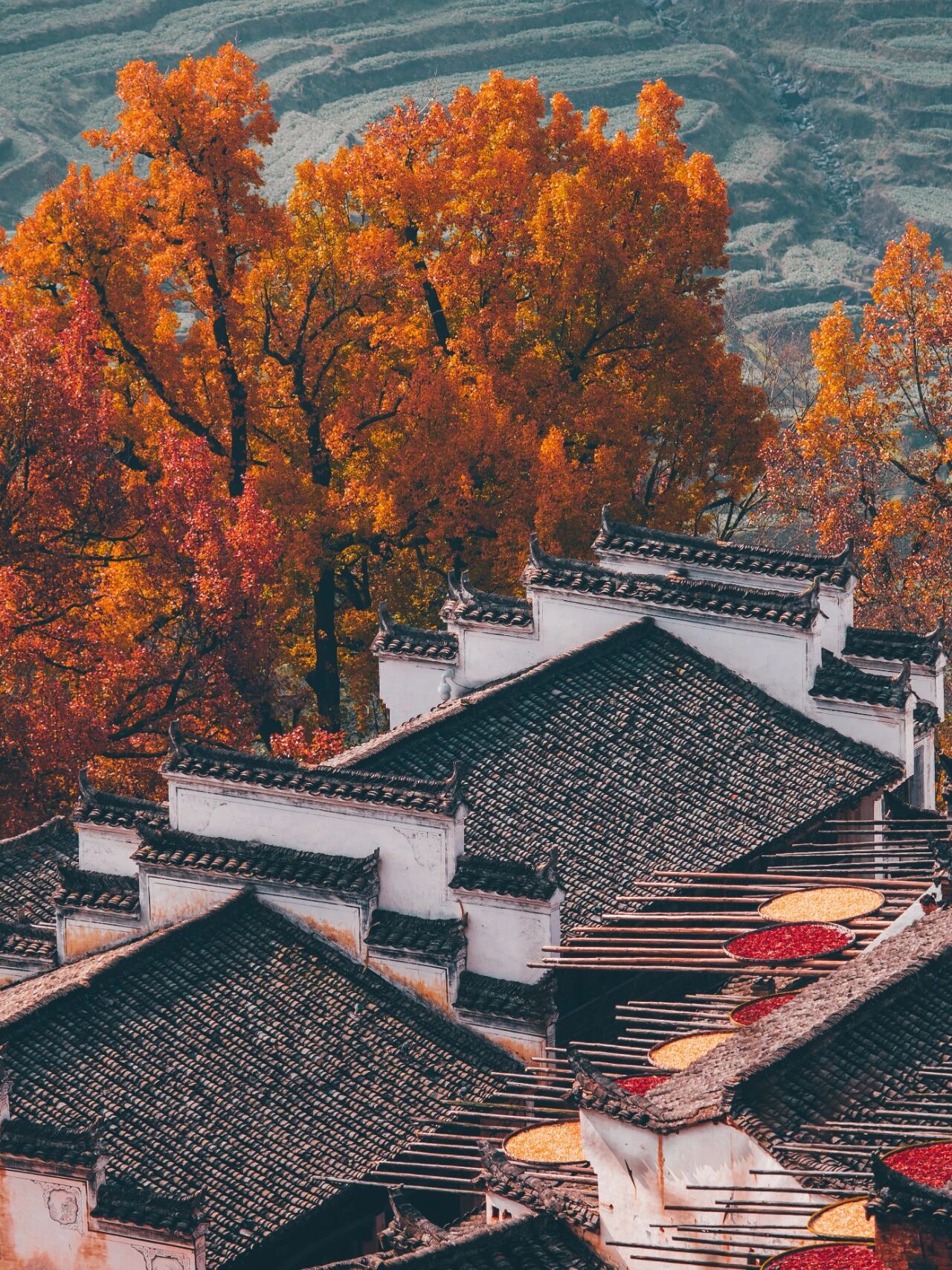 此时已然进入红枫最佳观赏期,篁岭的秋色到达巅峰,这里不止有层林尽染的红枫美景,更有着秋色烟火的双重治愈,邀你用五感解锁这份初冬限定的浪漫。