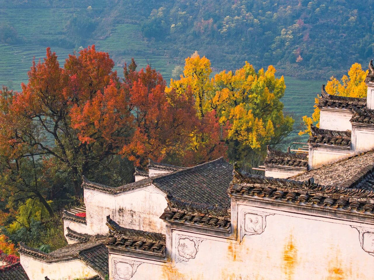 有着中国最长秋天” 美誉的江西婺源篁岭,正以独有的秋日浪漫霸占赏秋热榜。进入12月,霜叶红于二月花” 的诗意,便在篁岭有了具象答案。篁岭坐落于皖南赣北交界的徽州山区,600米左右的海拔搭配适中纬度,加之山区降温节奏较平原更缓、昼夜温差更显著,让这里成为秋冬交替时中国难得的晚秋秘境,成就了这抹11月中旬至12月中旬持续绽放的中国最后一抹秋色