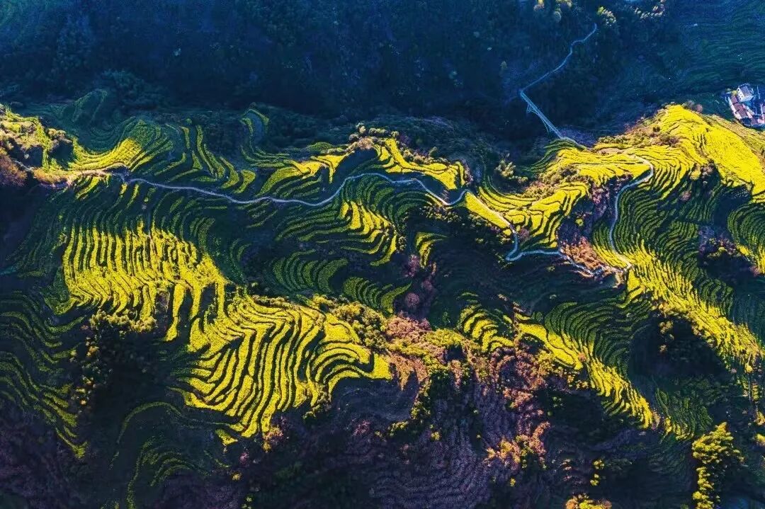 漫山的金黄顺着梯田的脉络绵延起伏,与对面古村一期花海隔山相望,山风掠过壮阔得让人移不开眼。更难得的是,这片花海的花期更为绵长,古村一期梯田花海的金黄将一直延续到4月上旬,而高岭二期梯田花海,更能把这份春日的浪漫,稳稳留到4月中旬。