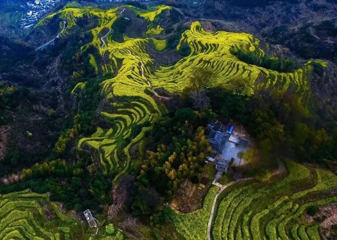这片花海与粉墙黛瓦的古宅挨得最近,推开木窗,就是满目撞进来的金黄;走在青石板古巷里,抬头是花枝探出墙头,低头是花瓣落满石阶,古韵悠悠的徽州村落,被这热烈的春花衬得愈发温柔,一呼一吸间,全是春日的清甜。