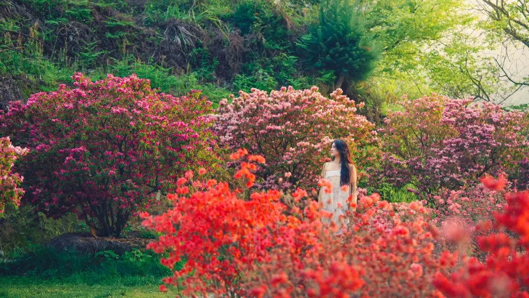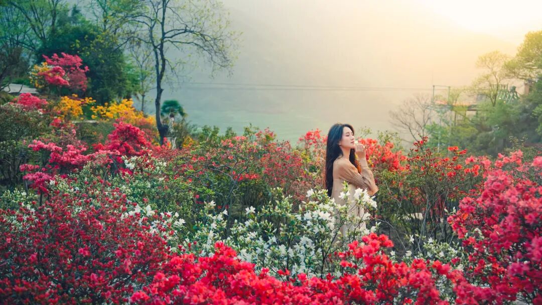 等到四月中旬,春风会唤醒漫山的杜鹃,杜鹃园里的山花次第绽放,红似火、粉如霞,与青绿色的山野交相辉映,一直热闹到五月上旬,给篁岭的春天,画上最绚烂的收尾。